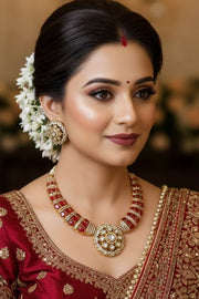 Red Moissanite Polki Necklace in Gold plated