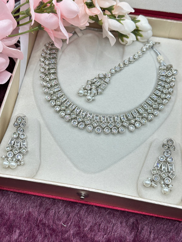 "Transform your little girl into a princess with our Tinku Polki necklace set! This beautiful set includes a stunning necklace that sparkles in the light and matching earrings. Perfect for special occasions or everyday wear. Your daughter will feel like royalty!"