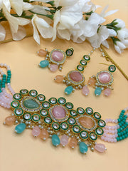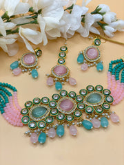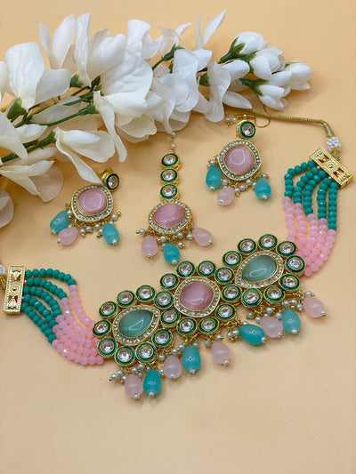 Meenakari Kundan choker set light weight comfortable wear with adjustable size for necklace.comes with Tikka Earring Set