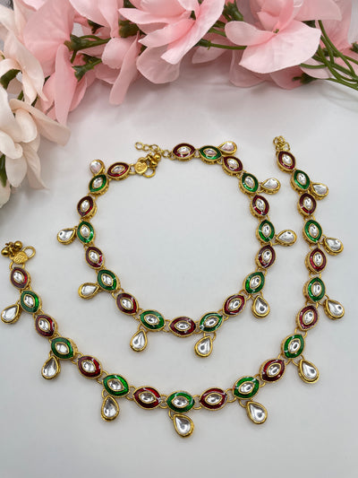 We have a variety of Kundan jewellers Payal in all shapes and sizes. Our designs are inspired by the Mughal Empire, with intricate detail and unique colour combinations. Our Kundan jewellers Payal are perfect for any occasion, and can be customised to suit your style.