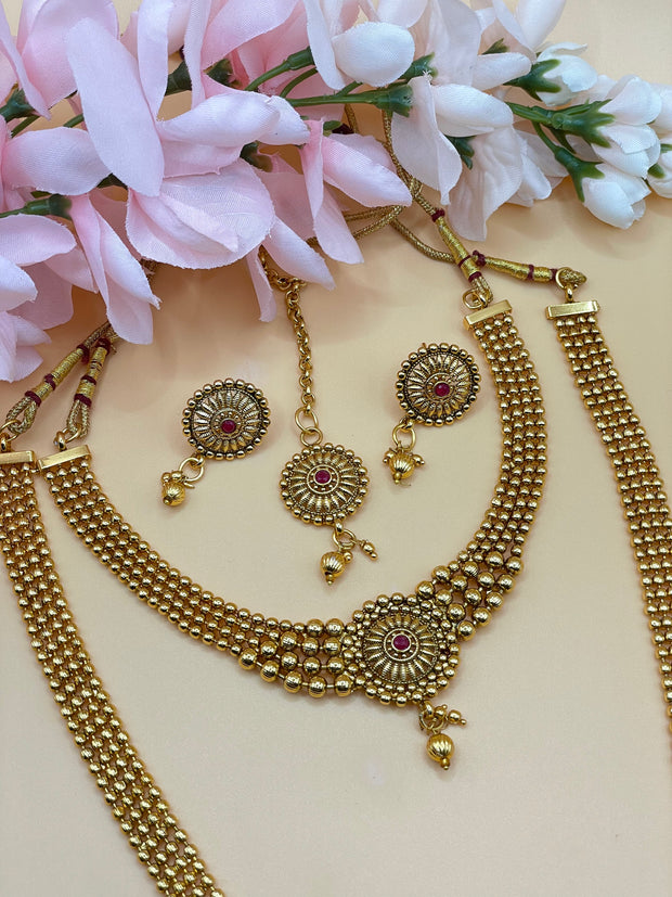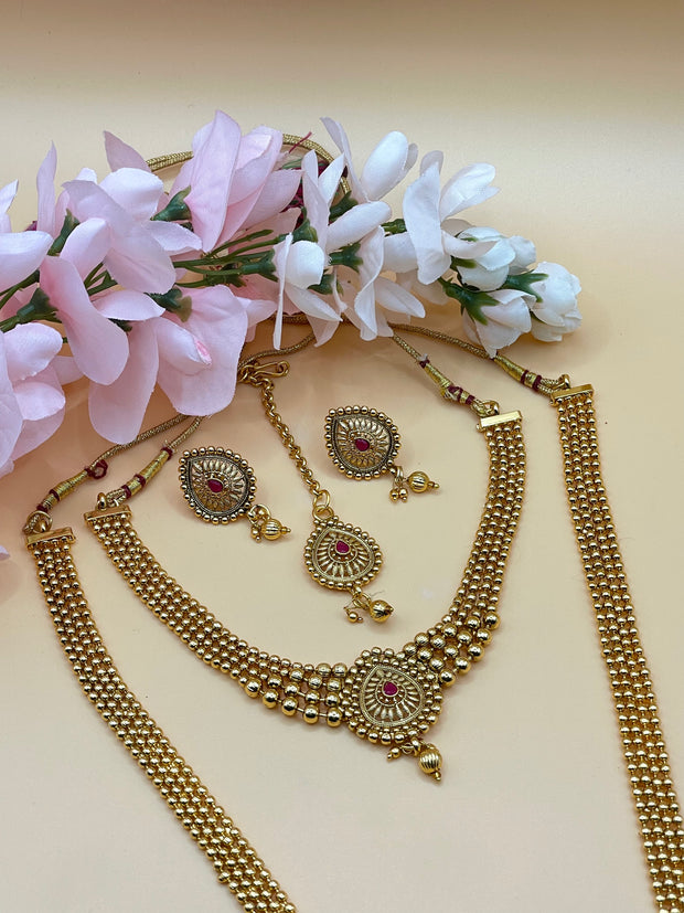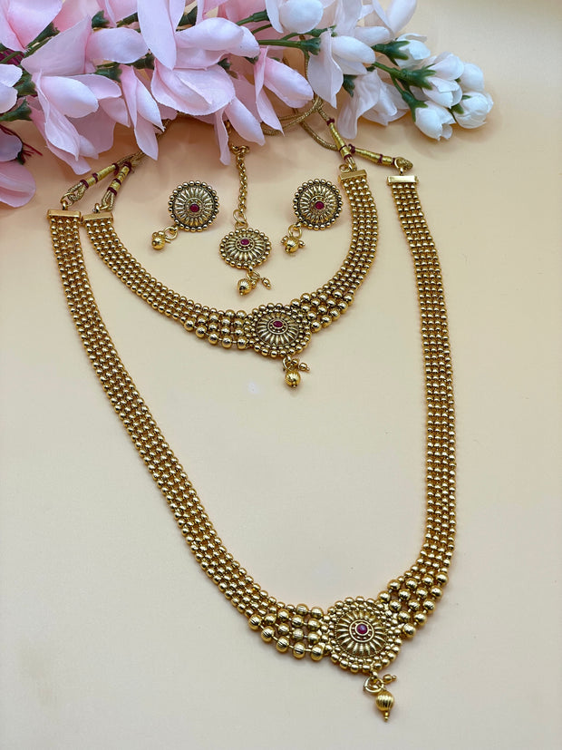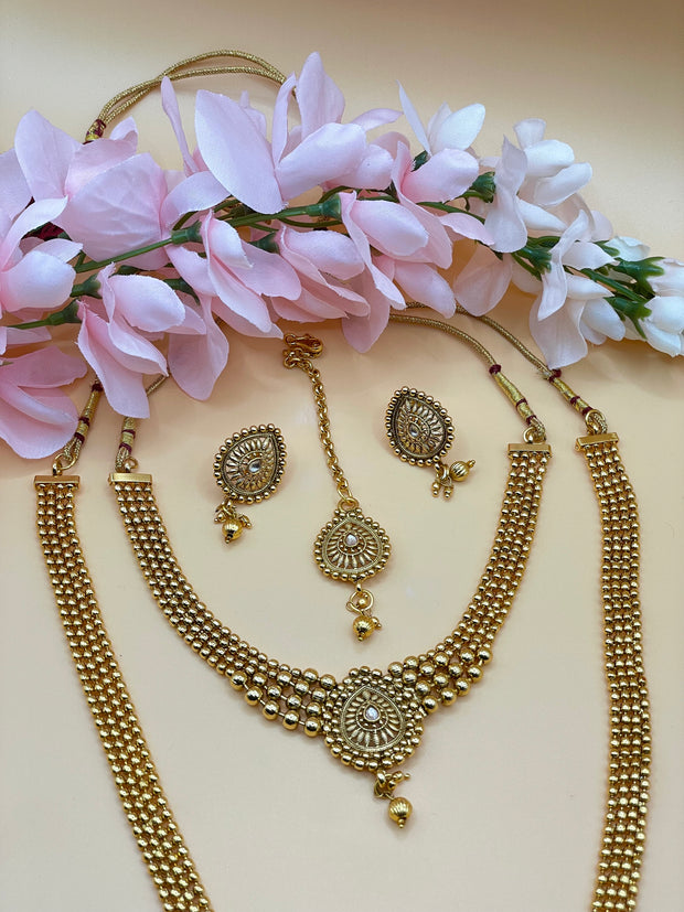 Beautiful gold plated high quality Mala with choker Tikka earrings set comes in combo set .