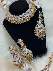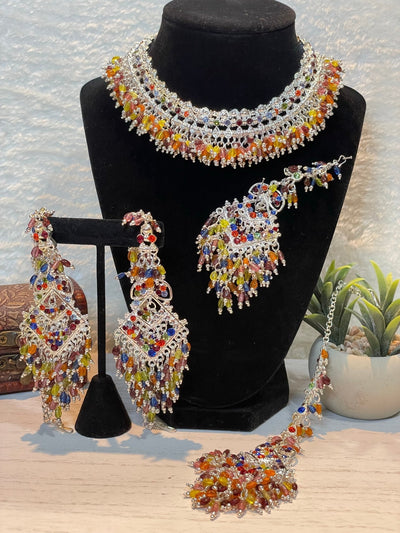 Multi-colour Silver Choker Set Comes With Tikka Earring And Passa