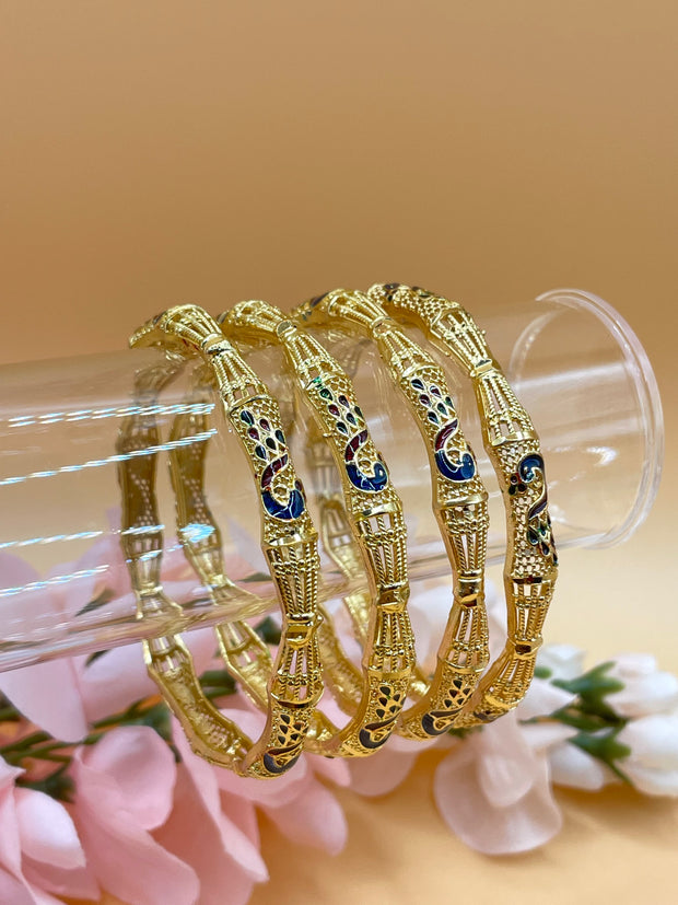 Beautiful peacock designs bangles comes in set of four. Beautiful light weight everyday wear