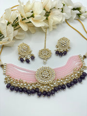 5 layer Kundan choker set comes with Tikka earring light weight comfortable in wearing .